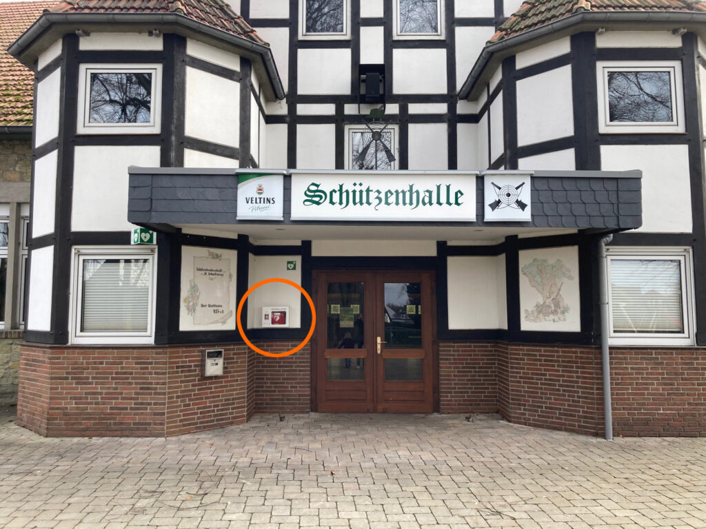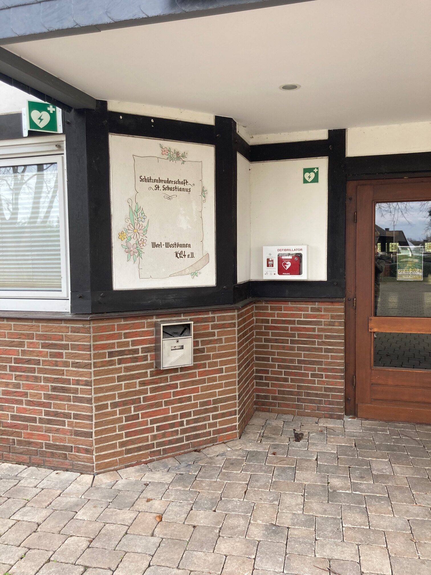 An unserer Schützenhalle ist im Haupteingang, genauer gesagt außen links, ein Defibrillator installiert. Der gut Sichtbare und für jedem zugängliche Kasten, kann ohne Schlüssel oder sonstige Hilfsmitte über einen Hebel geöffnet werden. Die sofortige Unterstützung bei erste Hilfe-Maßnahmen durch das Gerät ist somit gewährleistet. Zusätzlich wurde am Haupteingang in der Halle ein neuer erste Hilfe Koffer, welcher auf dem neuesten Stand ist, montiert.